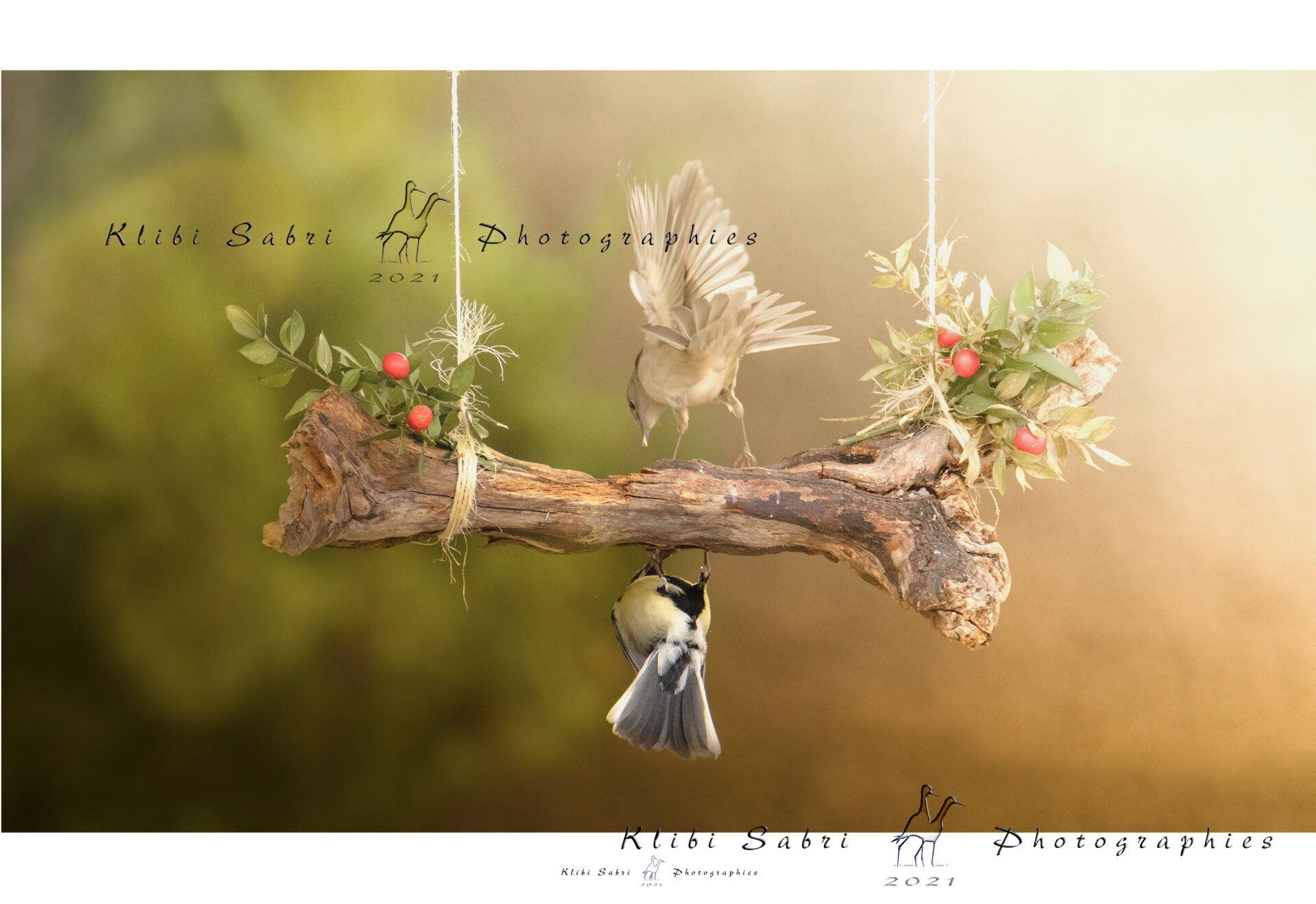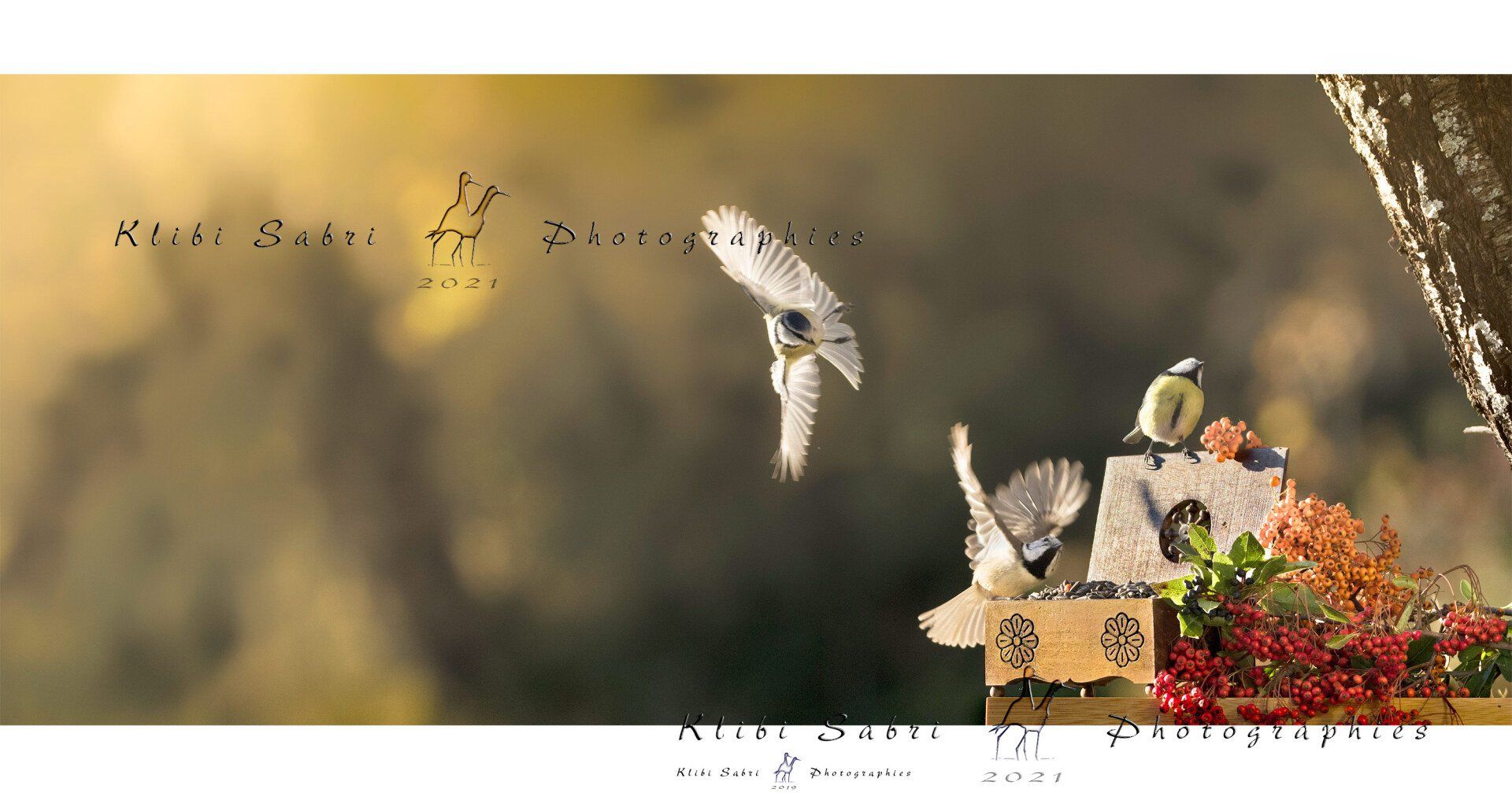 Pour la petite histoire technique, lors des prises de vues, je dispose des mangeoires confectionnées avec du cèp de vigne ou des morceaux de vielles branches. Je les creuse à l’aide de mes petits outils de fortune et une fois achevées, je les remplis de pépites de tournesol et de noix de Grenoble, afin de les disposer partout où je passe en hivers. Tout espace est bon à prendre... même en ville ! Effectivement, certains passereaux comme par exemple les verdiers, mésanges et fauvettes élisent domicile dans les buissons, les conifères et pour certaines autres espèces, les façades murales!